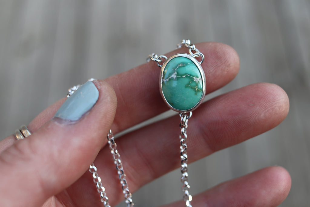 Emerald Valley Turquoise x Pearl Lariat Necklace (16 inches)