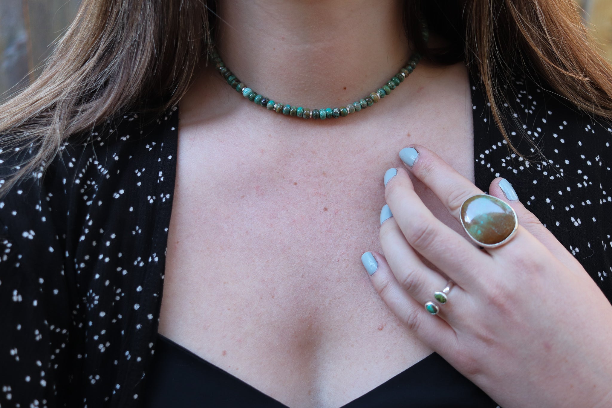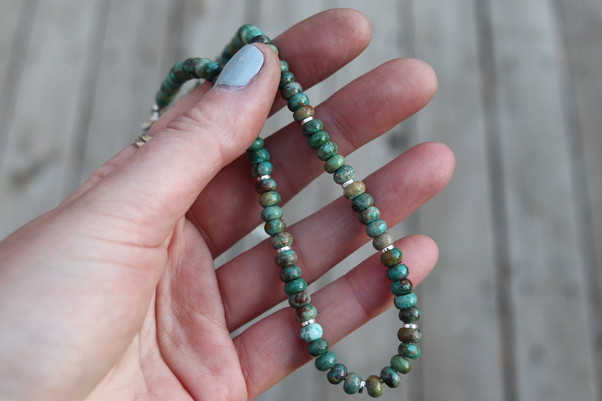 Fox Turquoise Beaded Necklace (14 inches + 4 inch chain extender)