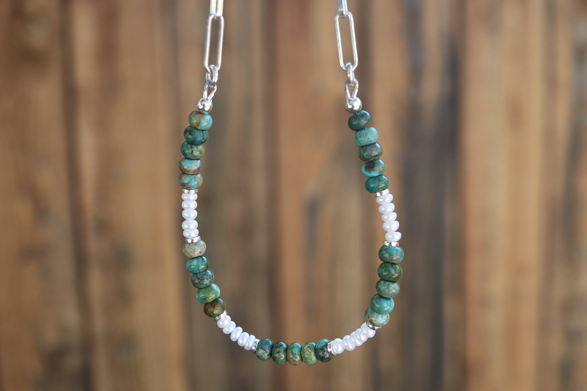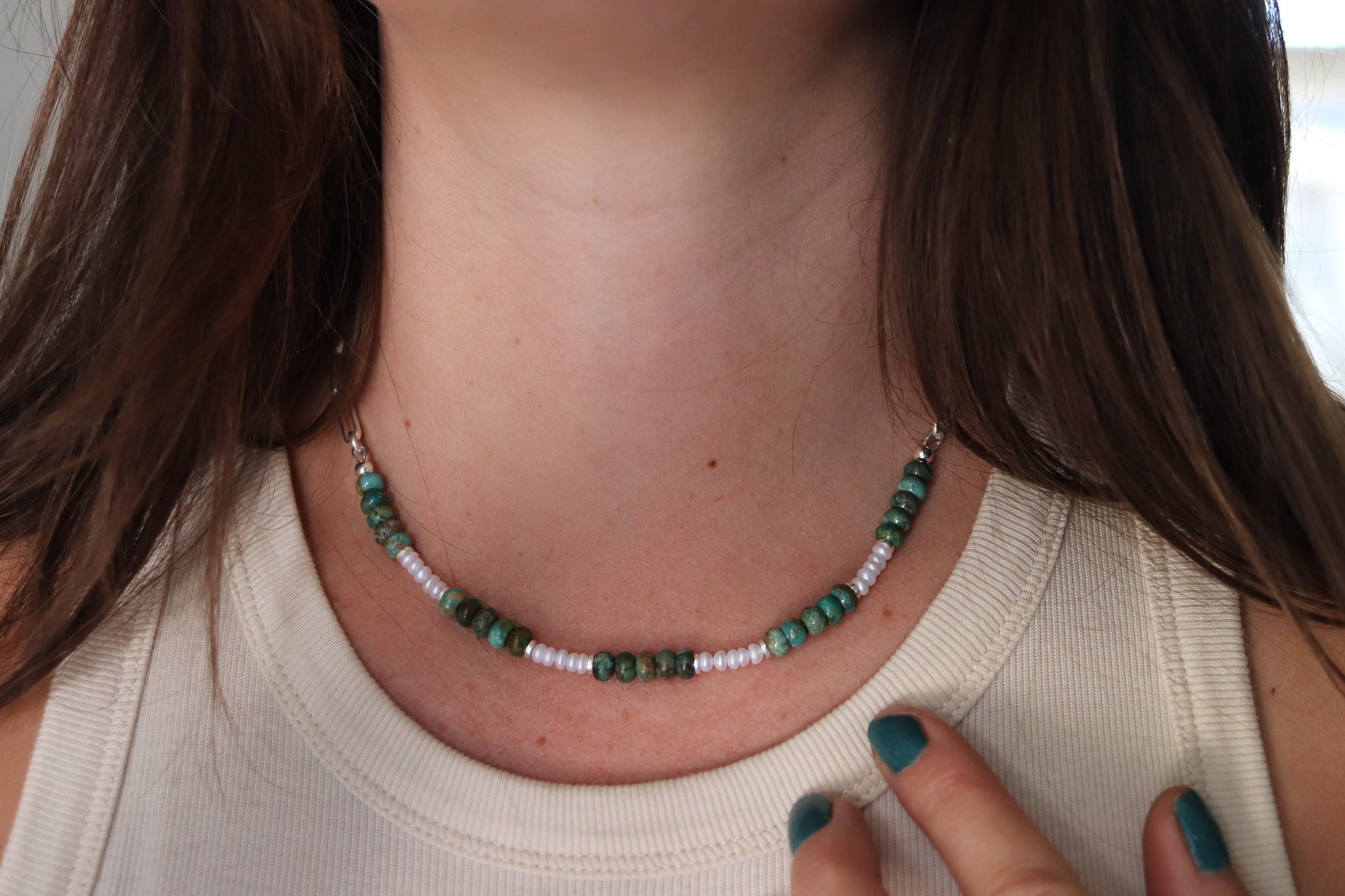 Fox Turquoise x Pearls Beaded Necklace (16 inches)