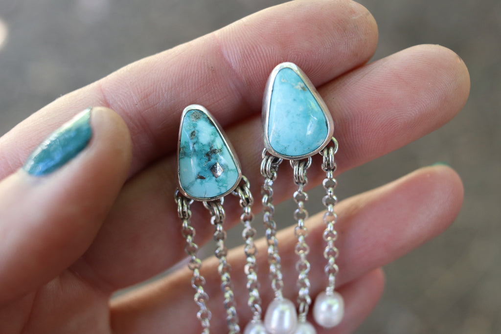 Emerald Valley Turquoise x Pearls Lariat Earrings